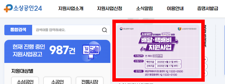 우선 아래 링크를 통해 소상공인 배달택배비 지원사업 전용 홈페이지에 접속합니다.