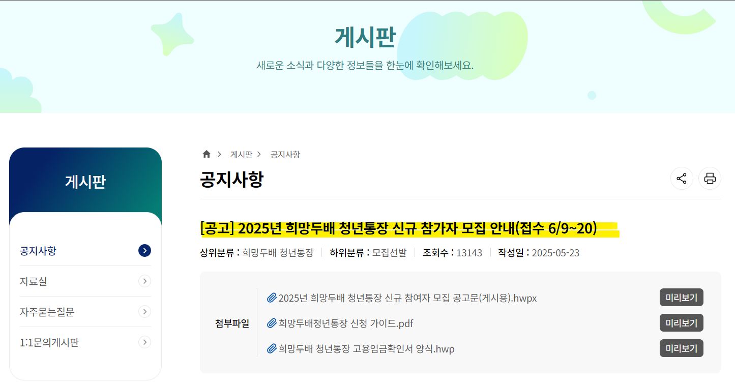 2025년 ‘희망두배 청년통장’ 모집은 6월 9일(월)부터 6월 20일(금)까지, 약 3주간 진행됩니다.