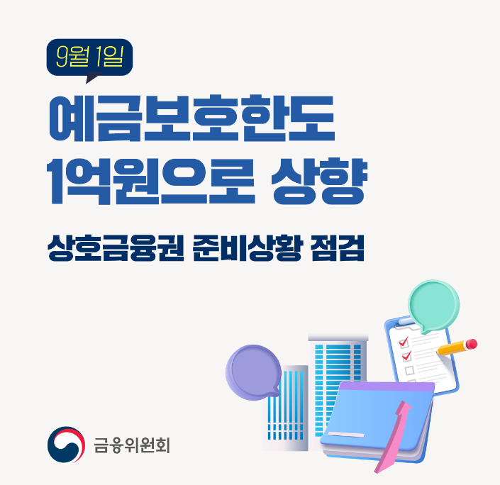 금융위원회는 오는 16일부터 다음 달 25일까지 예금보호한도 상향을 위한 6개 법령의 일부개정에 관한 대통령령 입법예고한다고 15일 밝혔다. 오는 9월 1일부터 은행·저축은행 등 - 정책브리핑 |