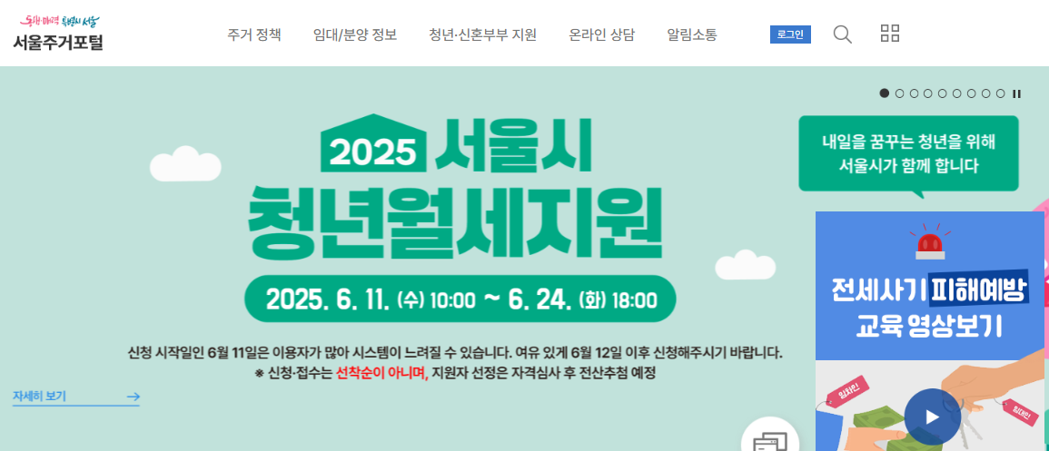 서울주거포털,Home, 서울시 청년월세, 청년 월세지원, 서울주거포털은 서울시의 주거정책 및 분양/임대 정보를 종합적으로 제공합니다. 내게 맞는 서울시의 주거복지 서비스를 찾아보세요.