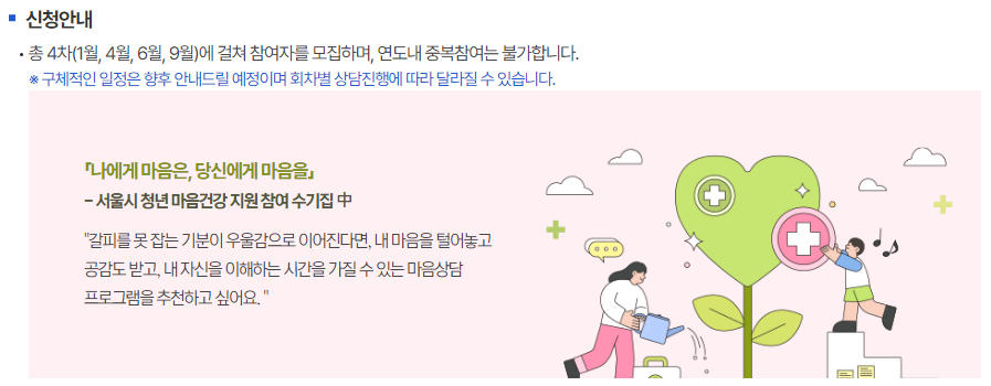 혼자 견디는 시간이 길어질수록 마음의 부담도 커지기 마련입니다. 특히 청년기에는 불안이나 스트레스, 우울감을 느끼는 경우가 많지만, 심리상담은 비용과 접근성 문제로 쉽게 다가가기 어렵습니다.